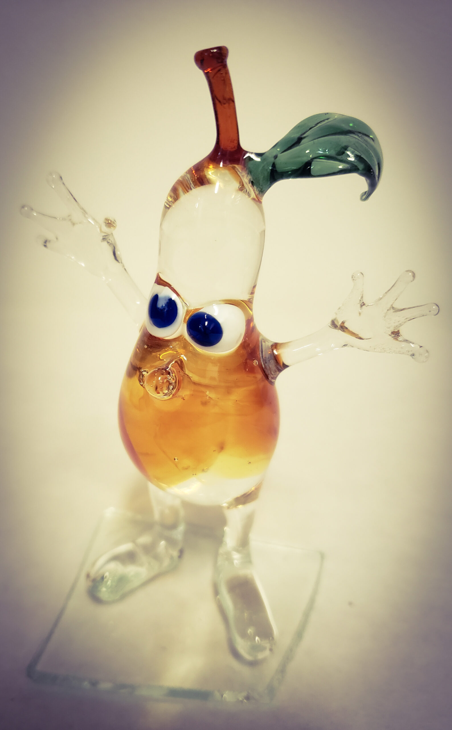 Poire en verre filé collée sur socle en verre