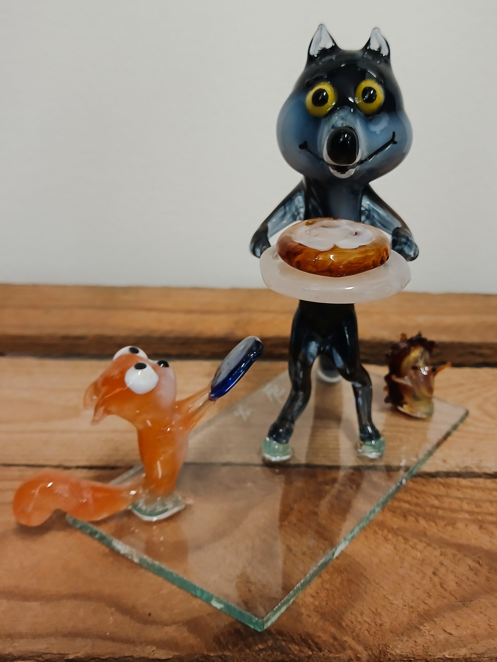 Ensemble de la pièce réalisée en verre filé transparent et coloré