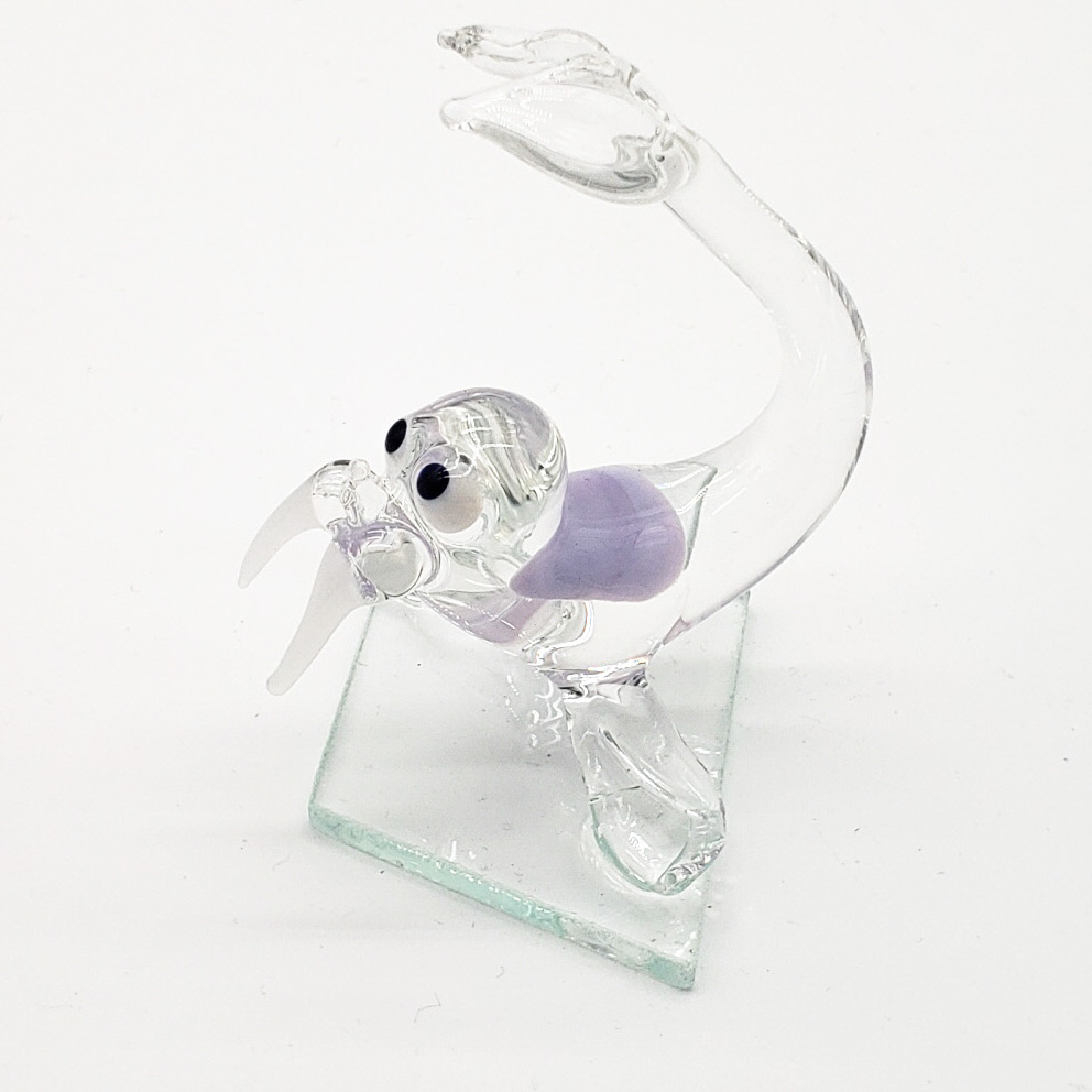 Morse queue en l’air en verre filé coloré et transparent collé sur socle